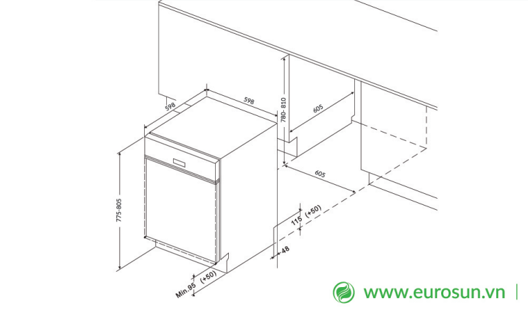 - Kích thước khoét âm tủ: 610R x 610S x 780/810C